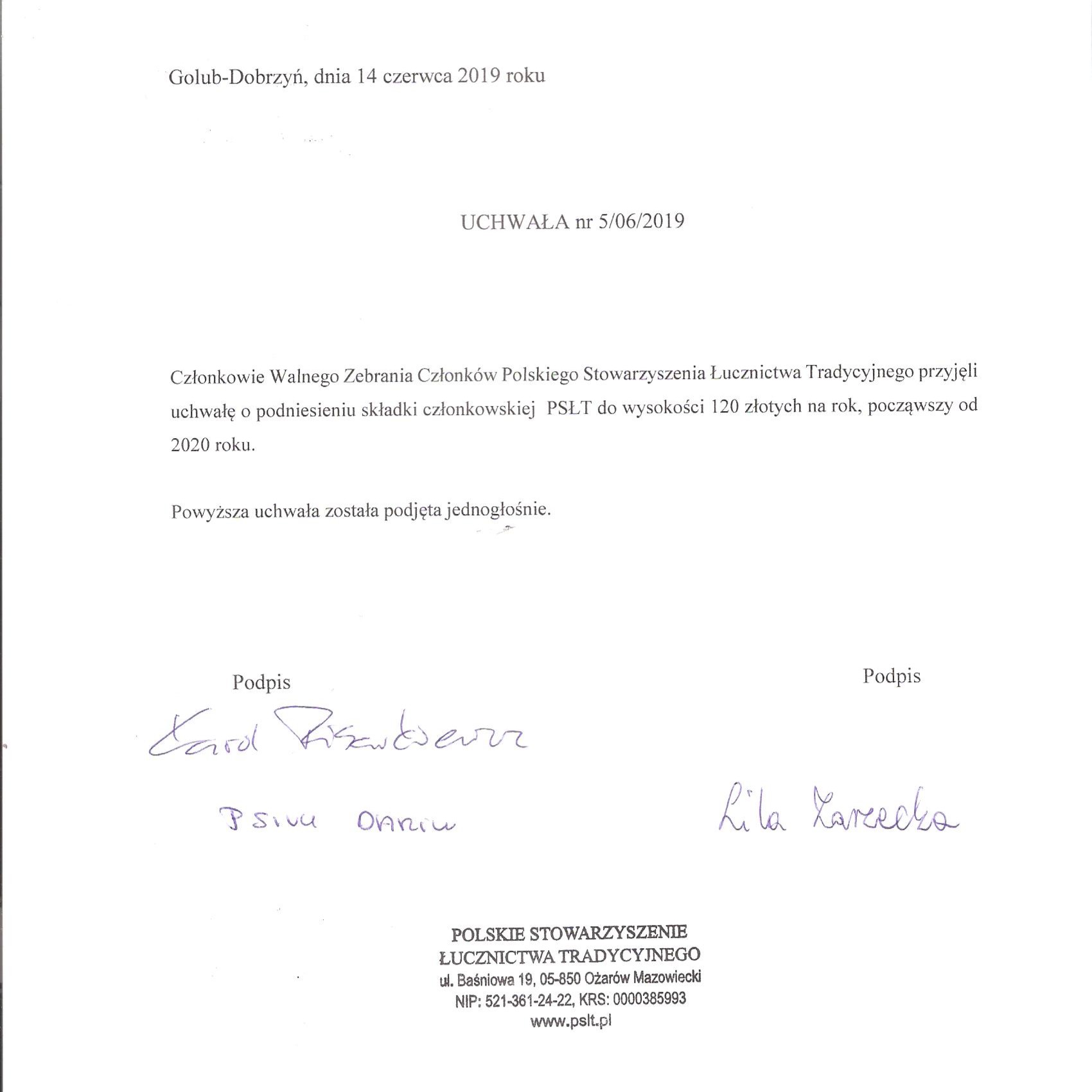 Członkowie Walnego Zgromadzenia Członków Polskiego Stowarzyszenia Łucznictwa Tradycyjnego przyjęli uchwałę o podniesieniu składki członkowskiej PSŁT do wysokości 120 zł rocznie, począwszy od 2020 roku.